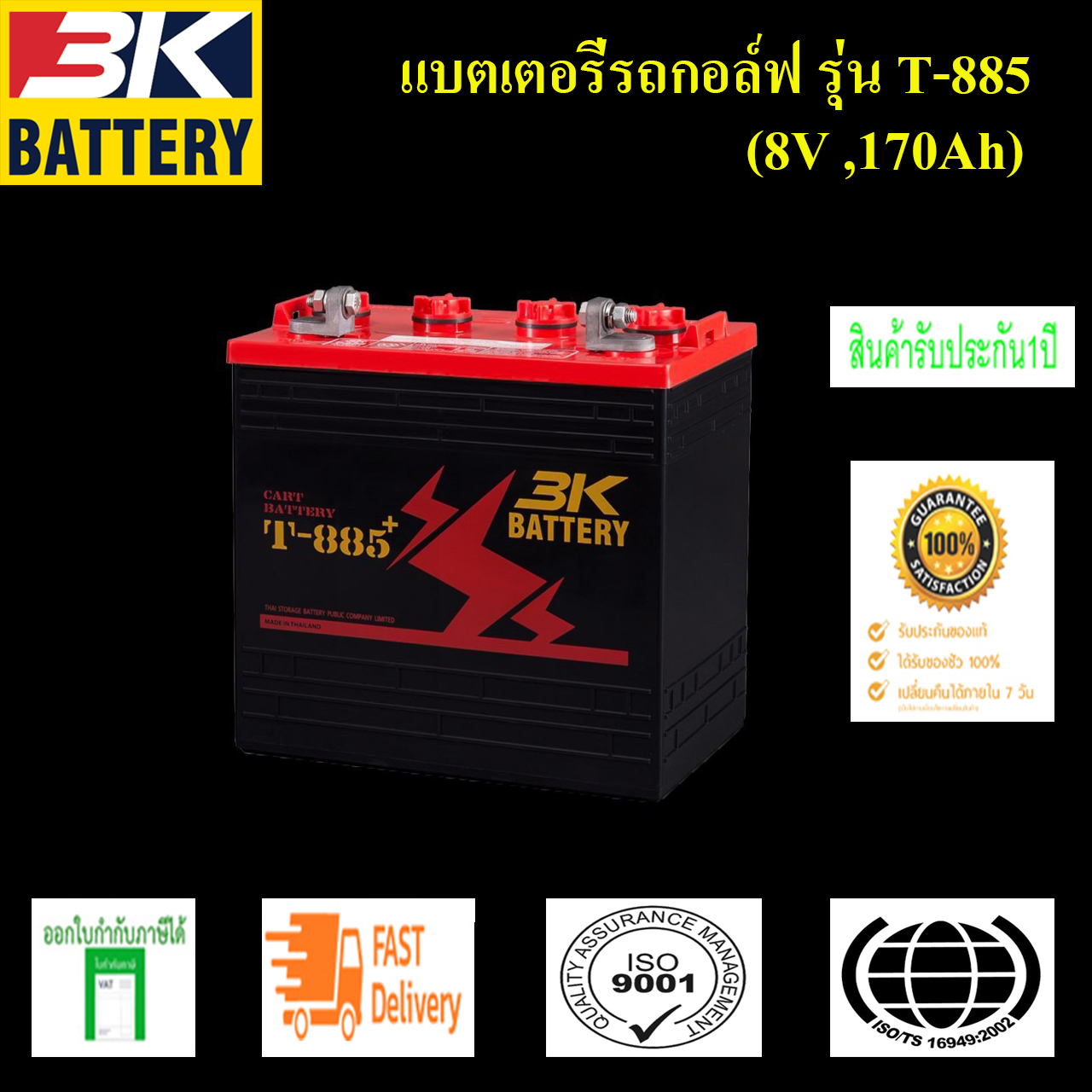 รายละเอียด แบตเตอรี่รถกอล์ฟ 3K T-885 (8โวลท์ 170แอมป์) – แบตเตอรี่น้ำ 8V 170 Ah 3K นวัตกรรมใหม่แบบ High Technology เป็นหนึ่งในนวัตกรรมใหม่ของแบตเตอรี่ในเมืองไทย และเป็นผู้ผลิตรายแรกในประเทศไทยที่มีแบตเตอรี่ รถไฟฟ้า ครบทุกรุ่น 6โวลท์ 8โวลท์ และ12โวลท์ ได้มาตราฐาน ด้วยการออกแบบโครงสร้าง ที่่มีประสิทธิภาพยอดเยี่ยม ให้กำลังไฟที่สามารถใช้งานได้อย่างสมบุกสมบัน ทนต่อการใช้งานอย่างต่อเนื่อง ด้วยความโดดเด่นของตัวผลิตภัณฑ์ ไม่ว่าจะเป็นแผ่นธาตุ ตะกั่วผสมพิเศษเฉพาะของ 3K แบตเตอรี่ทั่วโลกให้การยอมรับ ท่านจึงมั่นใจได้ว่าแบตเตอรี่รถไฟฟ้าของ3K เป็นสินค้าคุณภาพเยี่ยม ที่สามารถตอบสนองความต้องการ และสร้างความพึงพอใจ ให้กับผู้บริโภคได้เป็นอย่างดี