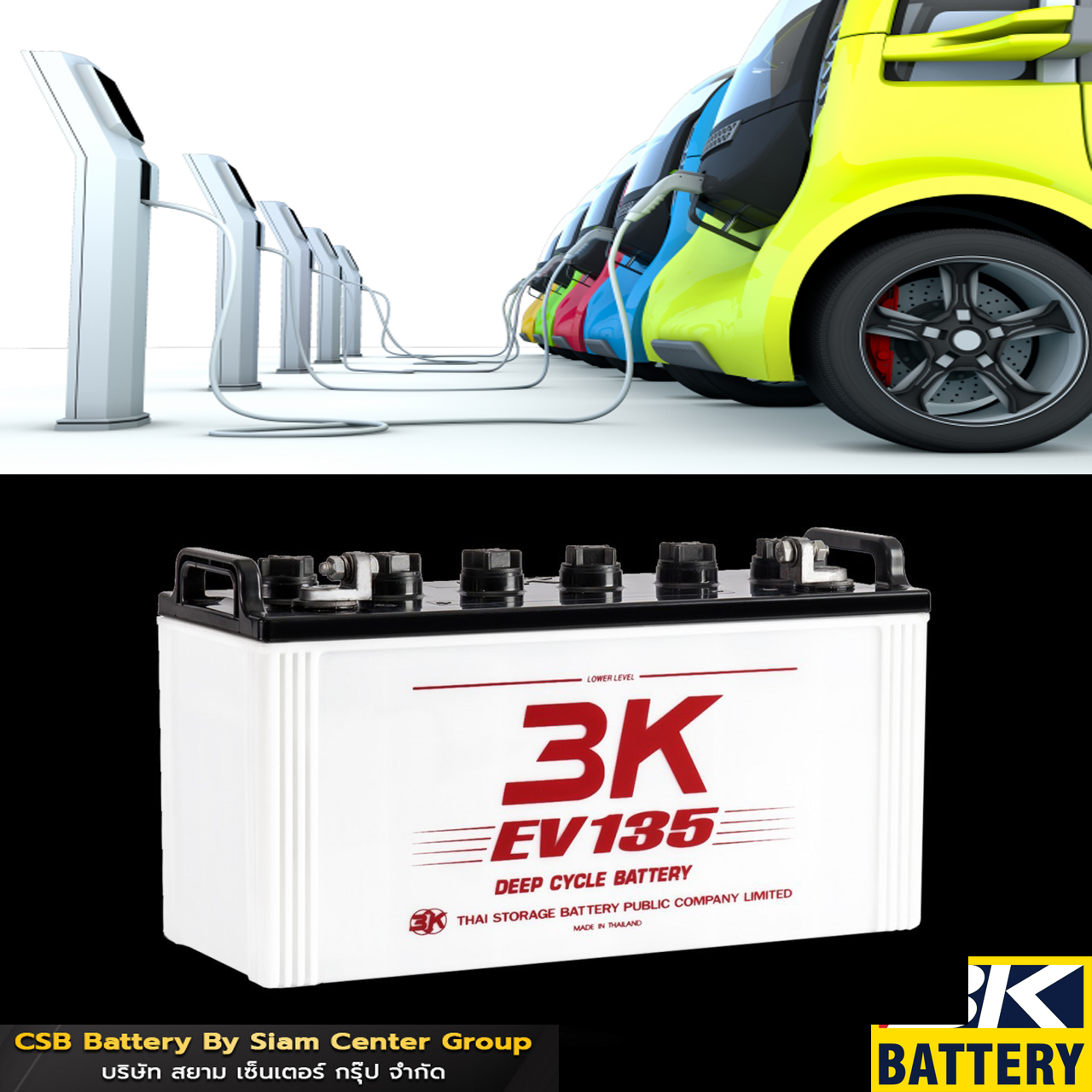 แบตเตอรี่รถไฟฟ้า แบตเตอรี่รถกอล์ฟ ยี่ห้อ 3K รุ่น EV ( 12V, 135Ah ) Electric train&Golf Cart Battery