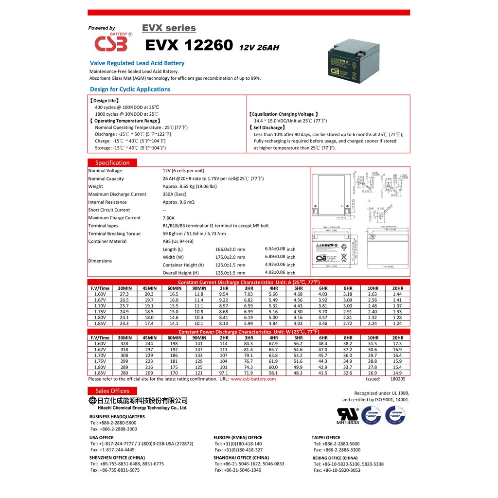 1.ขนาด กว้าง 17.5, ยาว 16.6, สูง 12.5 (ซม) 2.แบตเตอรี่ รุ่น EVX 12260 ( 12V 26AH) ระบบเป็นแบต VRLA แบตเตอรี่สกู๊ตเตอร์ไฟฟ้า แบตแห้ง 3.ควรเก็บแบตไว้ในอุณภูมิ 25 จะยิ่งทำให้แบตมีอายุการใช้งานที่ยาวนานมากยิ่งขึ้น 4.รับประกันแบต 1ปี (กรณีที่แบตเสียเองที่ไม่ได้เกิดจากการทำเสียเองของตัวลูกค้า) 5.การใช้งานแบต 400 cycles @ 100%DOD at 25℃ EVX ซีรีส์ออกแบบมาเป็นพิเศษเพื่อการคายประจุที่มีประสิทธิภาพในการใช้งานที่เป็นวงจร EVX ซีรีส์สามารถให้บริการได้มากกว่า 400 รอบในการปล่อย 100% ช่วงความจุอยู่ระหว่าง 12Ah ถึง 26Ah ของแบตเตอรี่ 12V และทั้งหมดเป็นแบบชาร์จไฟประสิทธิภาพสูง