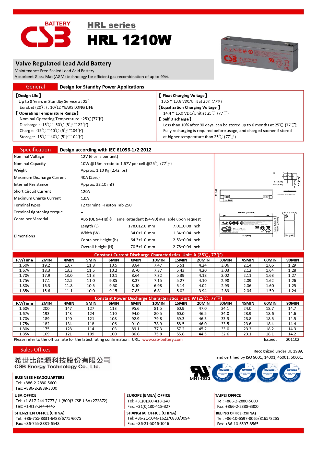 CSB แบตเตอรี่เครื่องสำรองไฟ รุ่น HRL1210W F2FR (12V,10W) ใช้สำรองไฟฟ้าหรือ UPS ทุกรุ่น ขอใหม่แท้100%