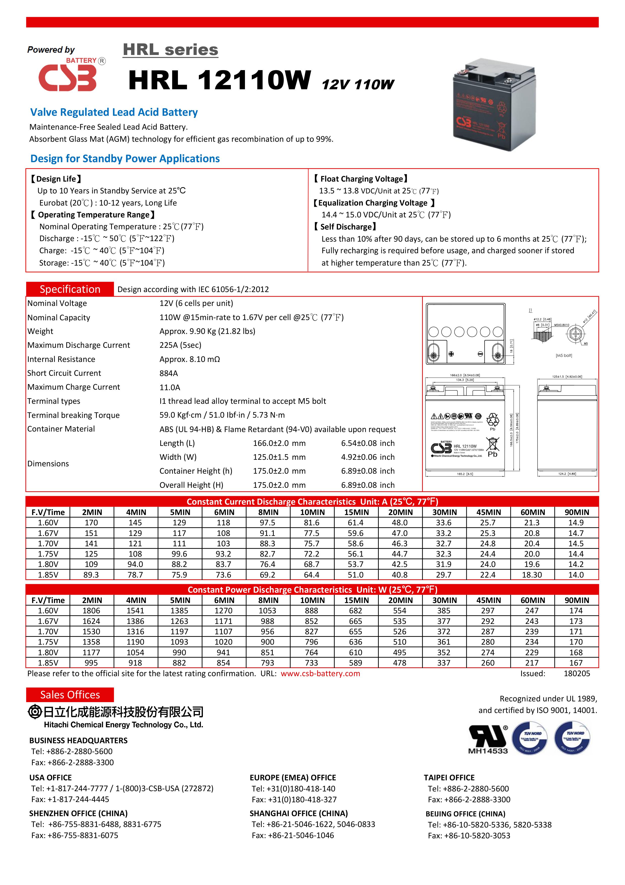 1.ขนาด กว้าง 16.6, ยาว 12.5, สูง 17.5 (ซม) 2.น้ำหนัก 9.90 kg 3.CSB แบตเตอรี่ รุ่น #HRL12110W เทียบได้กับ (12V,110W) ระบบสำรองไฟฟ้า เป็นแบต VRLA ("การใช้งานสแตนด์บาย" - พลังงานสำรอง: ส่วนใหญ่ใช้สำหรับ#ไฟฉุกเฉินหรือUPSและอื่นๆ เพื่อหลีกเลี่ยงความเสียหายในอนาคตที่อาจเกิดจากไฟดับทันที) แบตแห้ง 4.ควรเก็บแบตไว้ในอุณภูมิ 25 จะยิ่งทำให้แบตมีอายุการใช้งานที่ยาวนานมากยิ่งขึ้น 5.รับประกันแบต 1ปี (กรณีที่แบตเสียเองที่ไม่ได้เกิดจากการทำเสียเองของตัวลูกค้า) 6.อายุการใช้งานสูงถึง 8 ปี 🔋สินค้าของแท้ 100%🔋