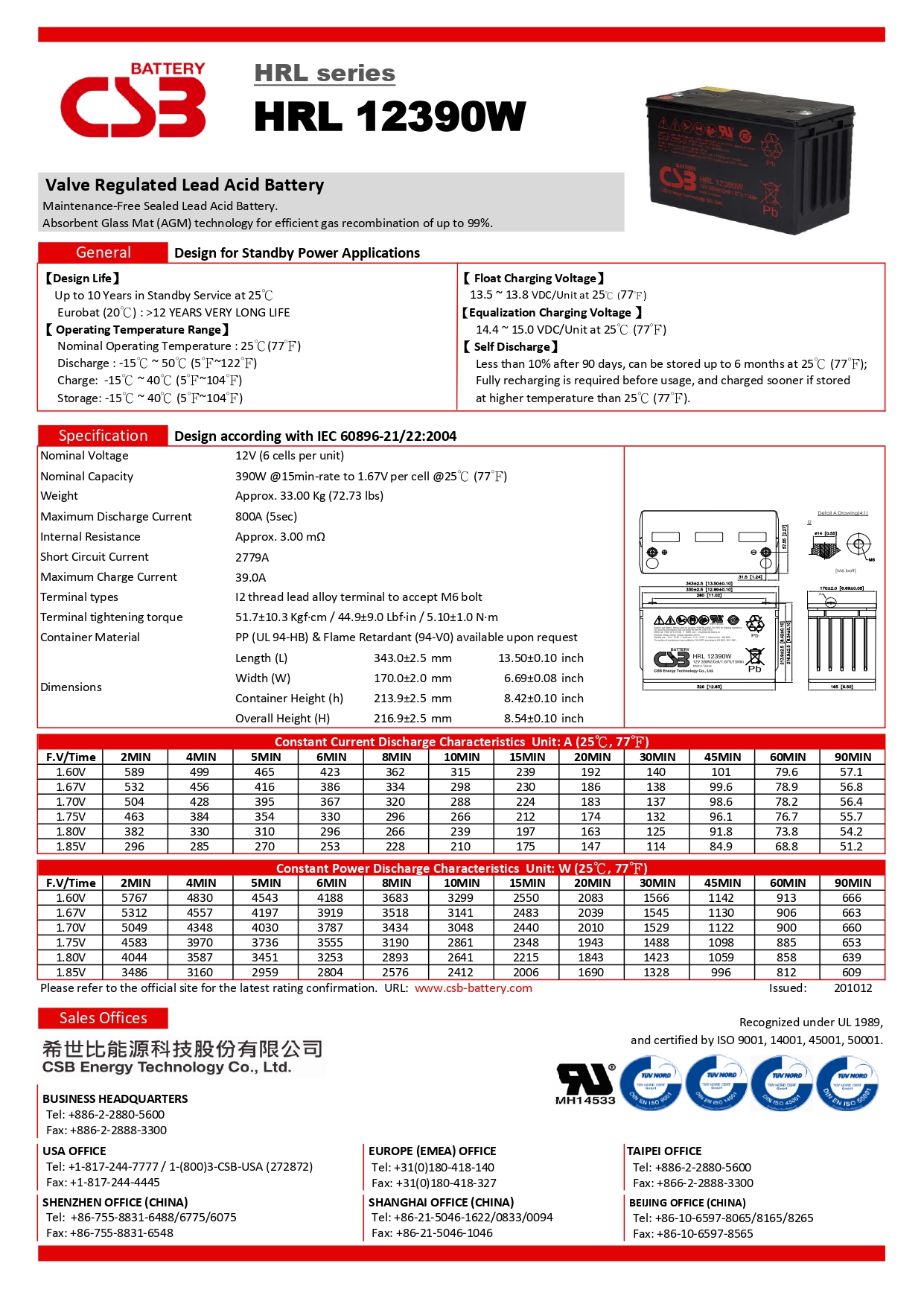 CSB แบตเตอรี่เครื่องสำรองไฟ รุ่น HRL 12390W (12V,390W) ใช้สำรองไฟฟ้าหรือ UPS ทุกรุ่น ของใหม่แท้100%