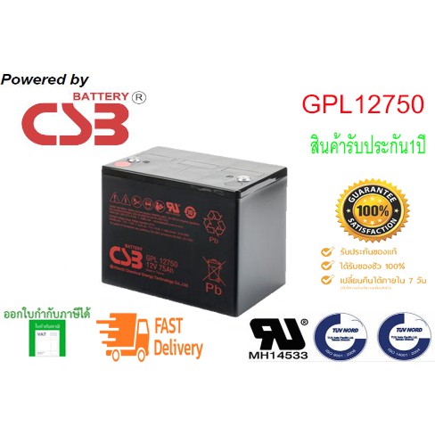 1.รุ่น GPL12750 (G24) ,(12V, 75AH) 2. ขนาด(กว้าง 16.85, ยาว 26.1, สูง 21.12) 3.แบตเตอรี่ประเภท Vale Regulated Lead Acid Battery (VRLA) หรือ Sealed lead Acid Battery (SLA) หรือBattery โดยผู้ผลิต คือ Hitachi Chemical Energy and Technology Co., Ltd. ซึ่งเป็นแบตเตอรี่เพื่อใช้ในอุตสาหกรรมระบบสำรองไฟ ทุกประเภท ซึ่งเป็นที่รู้จักกันอย่างแพร่หลายทั่วโลก 4.สินค้ารับประกัน1ปี 5.อายุการใช้งานสูงถึง 10 ปี หากท่านต้องการอัพเกรดให้ UPS ของท่านจ่ายไฟได้นานขึ้น Battery Shop ขอแนะนำ CSB รุ่น GPL12750 (G24) ,(12V, 75AH) คุณภาพดี สินค้าของแท้ 100%