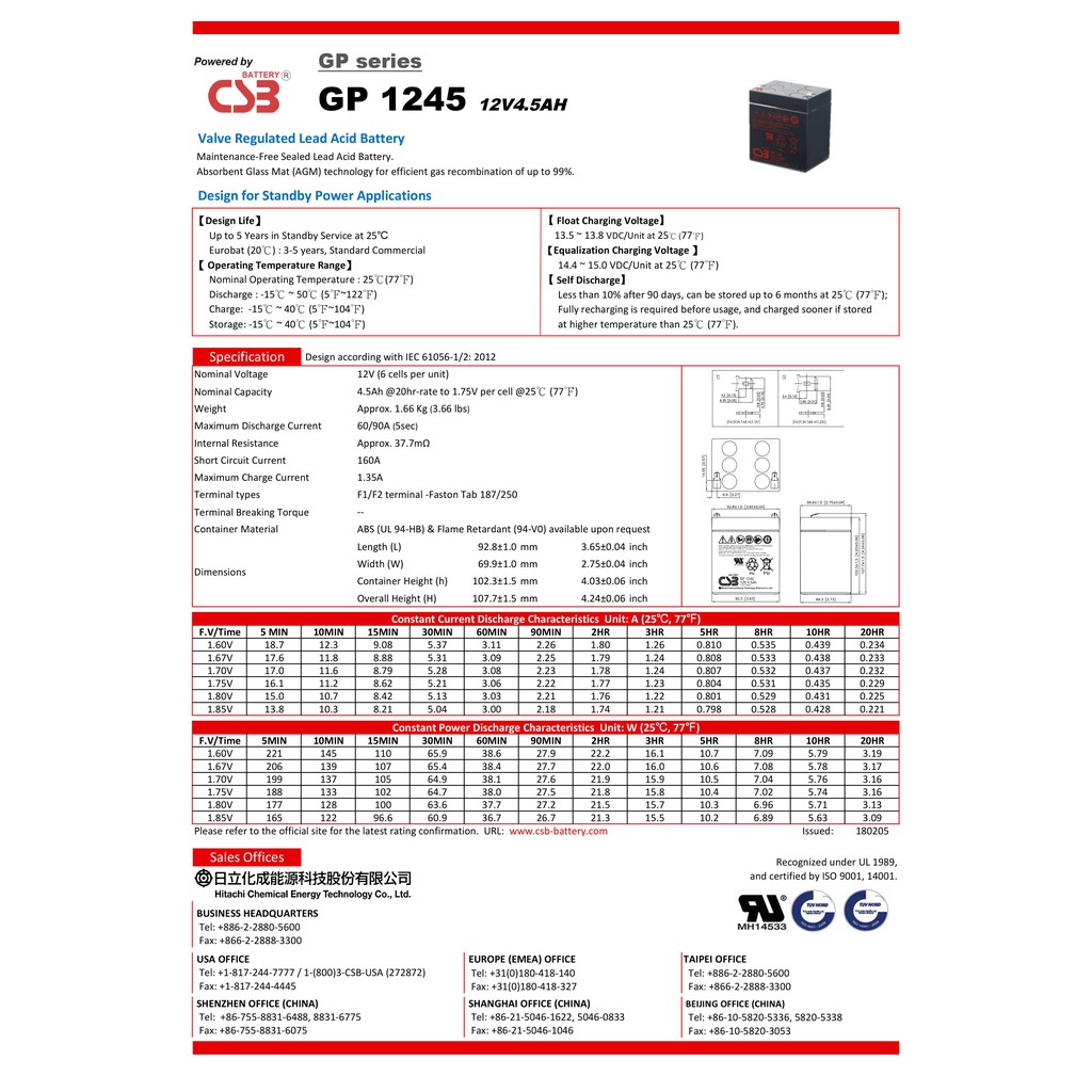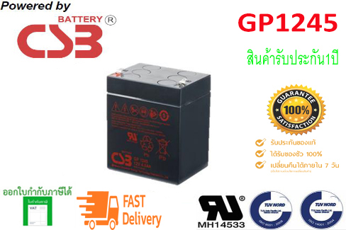 CSB BATTERY แบตเตอรี่เครื่องสำรองไฟ รุ่น GP1245 (12V,4.5AH) ใช้สำรองไฟฟ้าหรือ UPS ทุกรุ่น ขอใหม่แท้100%
