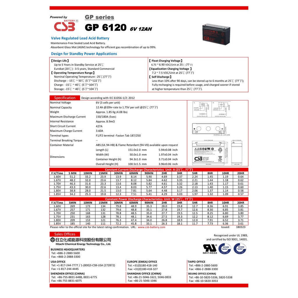 CSB แบตเตอรี่ รุ่น GP6120 F2 (6V,12AH)