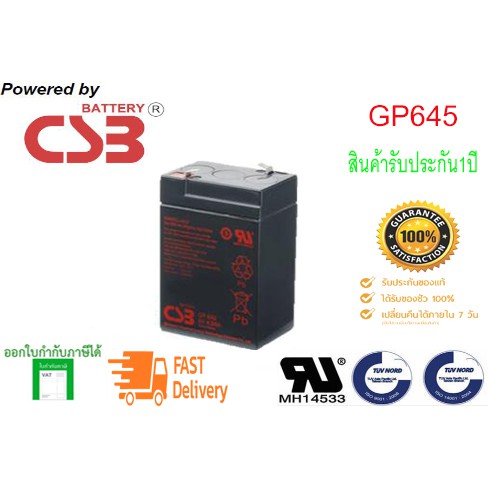 CSB BATTERY แบตเตอรี่เครื่องสำรองไฟ รุ่น GP645 (6V,4.5AH) ใช้สำรองไฟฟ้าหรือ UPS ทุกรุ่น ของใหม่แท้100%