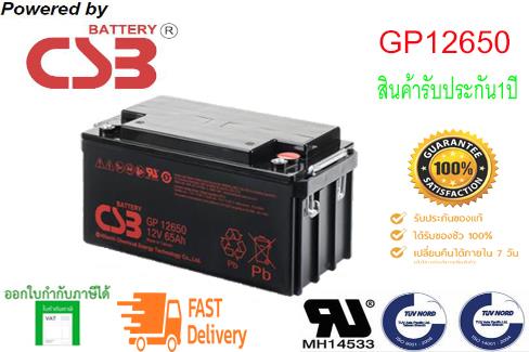 แบตเตอรี่ CSB BATTERY. รุ่น GP12650 (12V,65AH) ใช้สำรองไฟฟ้าหรือUPSทุกรุ่น
