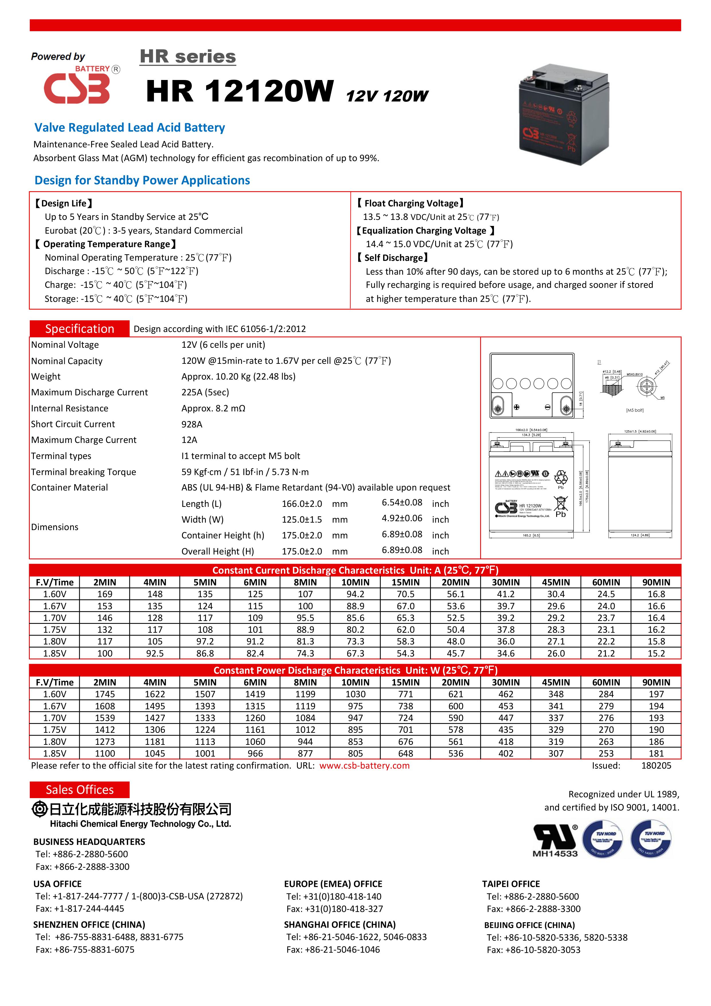 1.ขนาด กว้าง 16.6, ยาว 12.5, สูง 17.5 (ซม) 2.CSB แบตเตอรี่ รุ่น HR12120W F2 ระบบสำรองไฟฟ้า เป็นแบต VRLA ("การใช้งานสแตนด์บาย" - พลังงานสำรอง: ส่วนใหญ่ใช้สำหรับไฟฉุกเฉินหรือUPSและอื่นๆ เพื่อหลีกเลี่ยงความเสียหายในอนาคตที่อาจเกิดจากไฟดับทันที) แบตแห้ง 3.ควรเก็บแบตไว้ในอุณภูมิ 25 จะยิ่งทำให้แบตมีอายุการใช้งานที่ยาวนานมากยิ่งขึ้น 4.รับประกันแบต 1ปี (กรณีที่แบตเสียเองที่ไม่ได้เกิดจากการทำเสียเองของตัวลูกค้า) 5.อายุการใช้งานสูงถึง 3-5ปี สินค้าของแท้ 100%